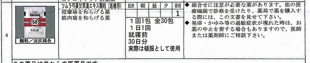 62:防風通聖散=膨満感対応 68:芍薬甘草湯=こむら返り対策