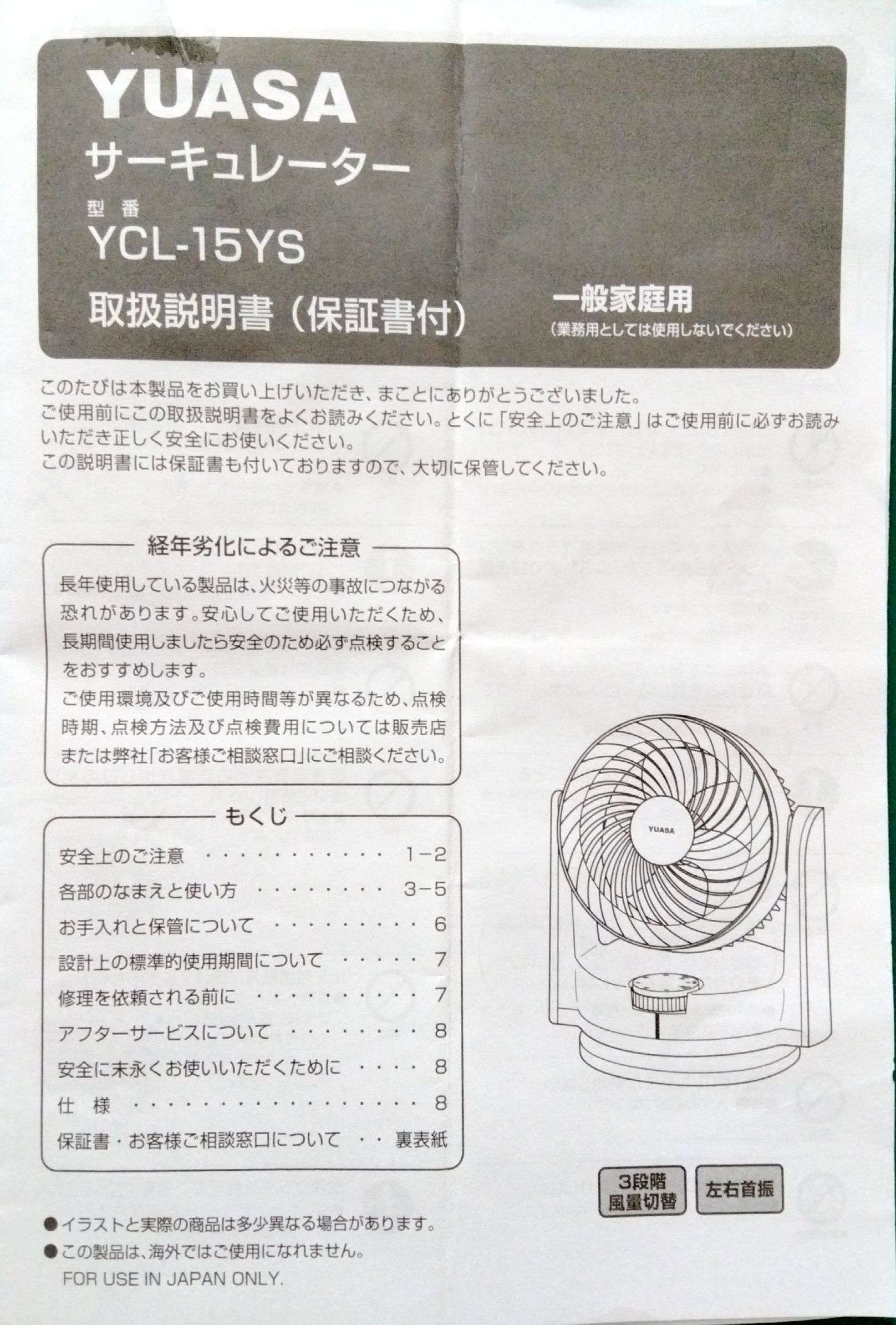 0520  22.05.29サーキュレーターYUASA YCL-15YS =pdf
