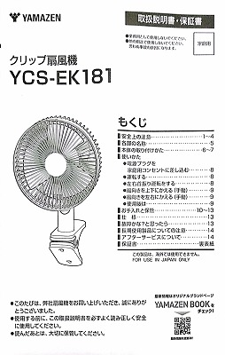 0522  2024.07.31 クリップ扇風機 山善 YCS-EK181