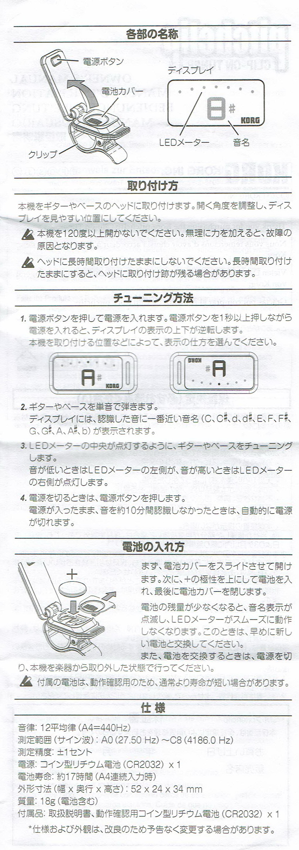 チューナー KORG =PDF