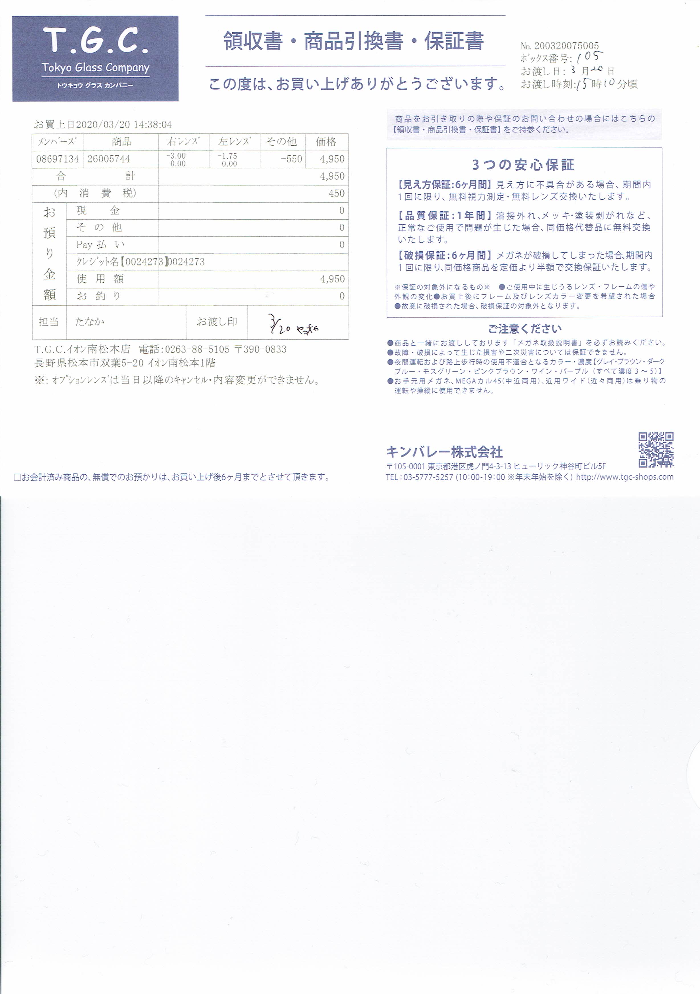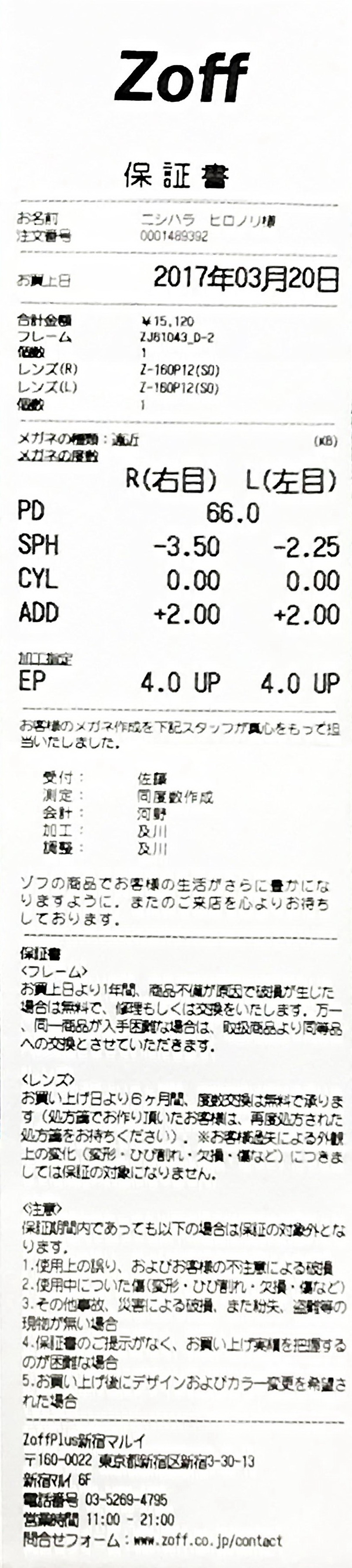 2020年3月20日T.G.C.   // zoff 遠近両用メガネ 保証書・眼鏡の度数 2017/03/20      ▲▲▲▲▲ Topへ ▲▲▲▲