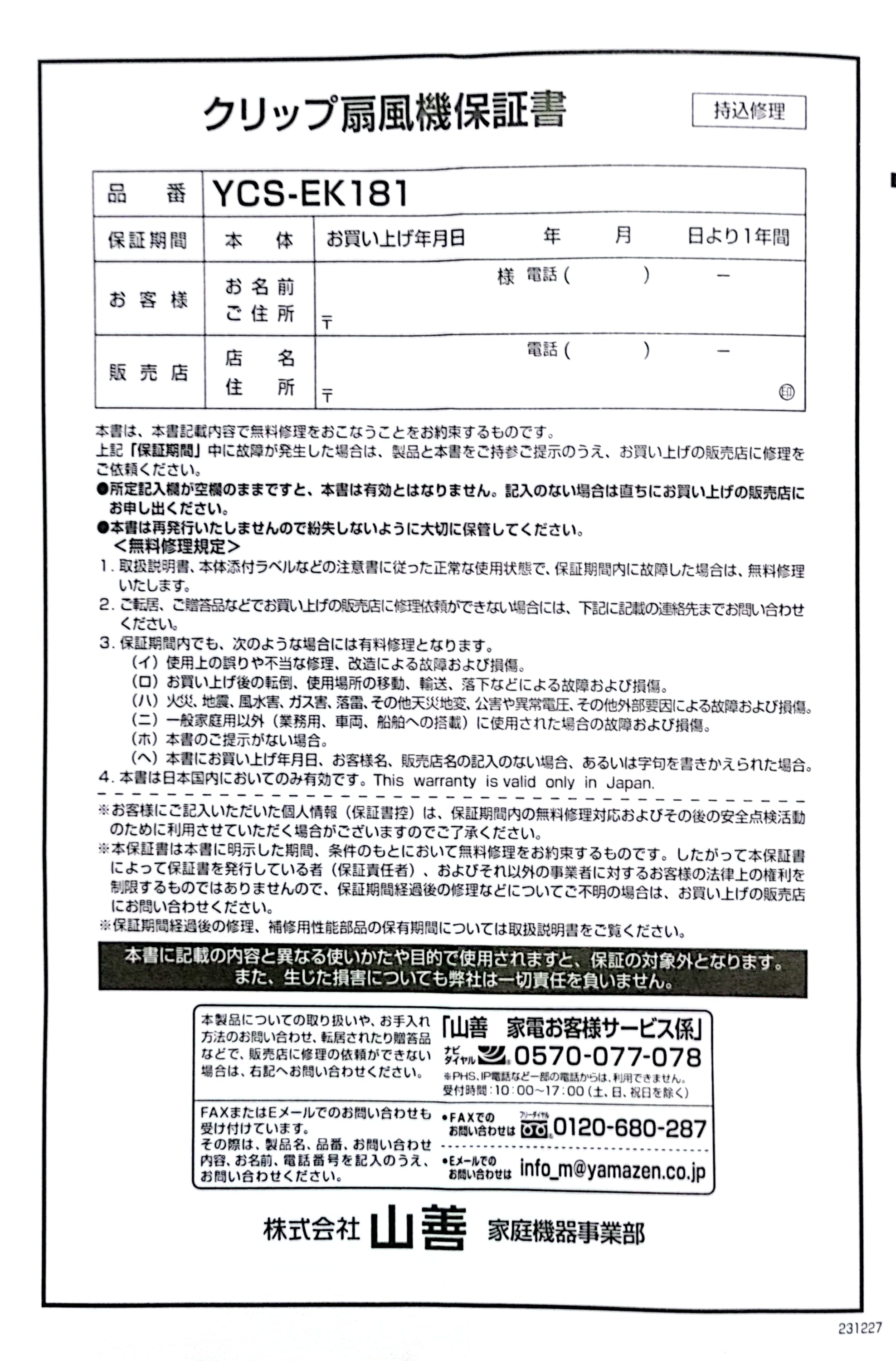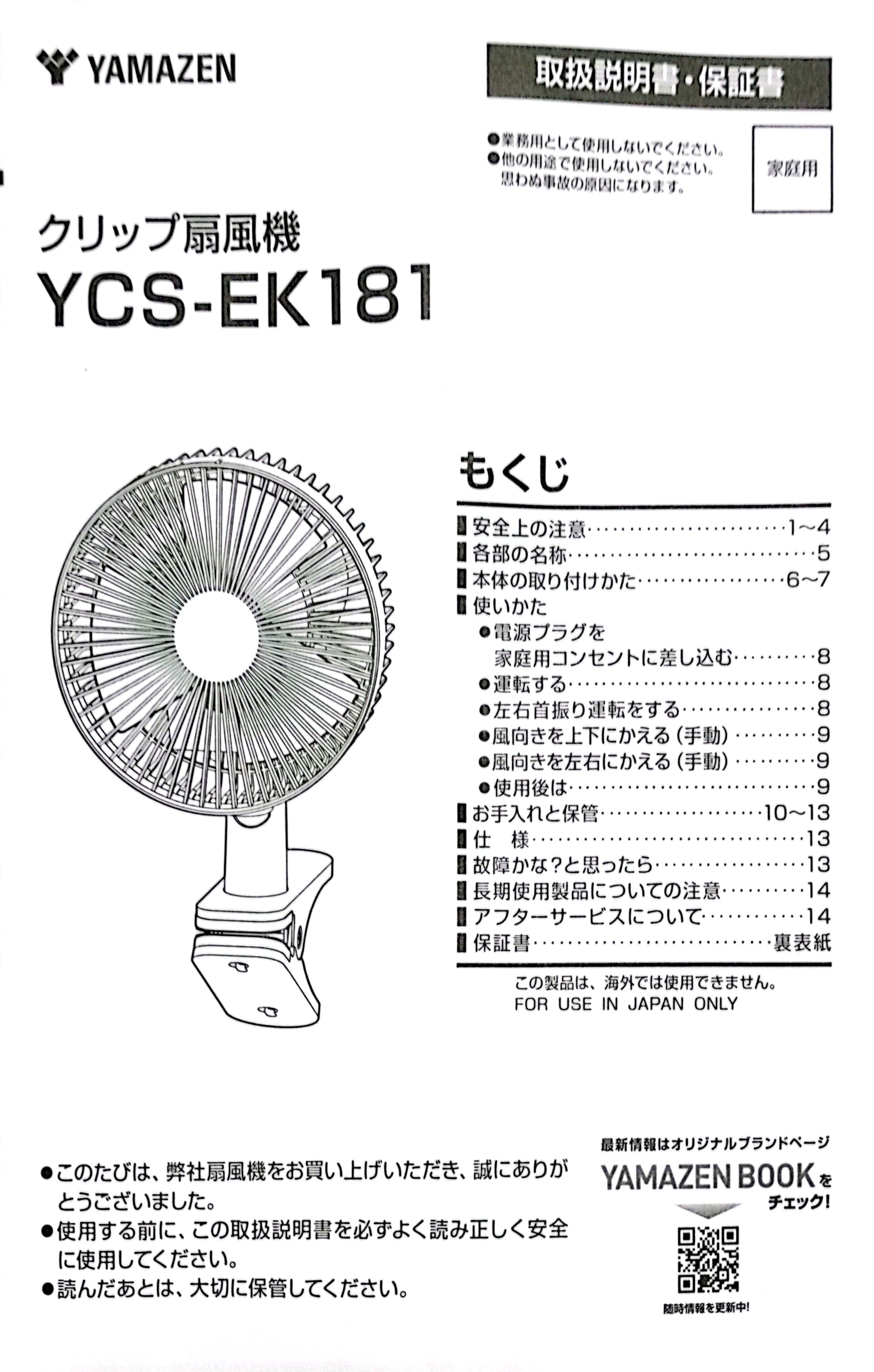 0522  2024.07.31 クリップ扇風機 山善 YCS-EK181