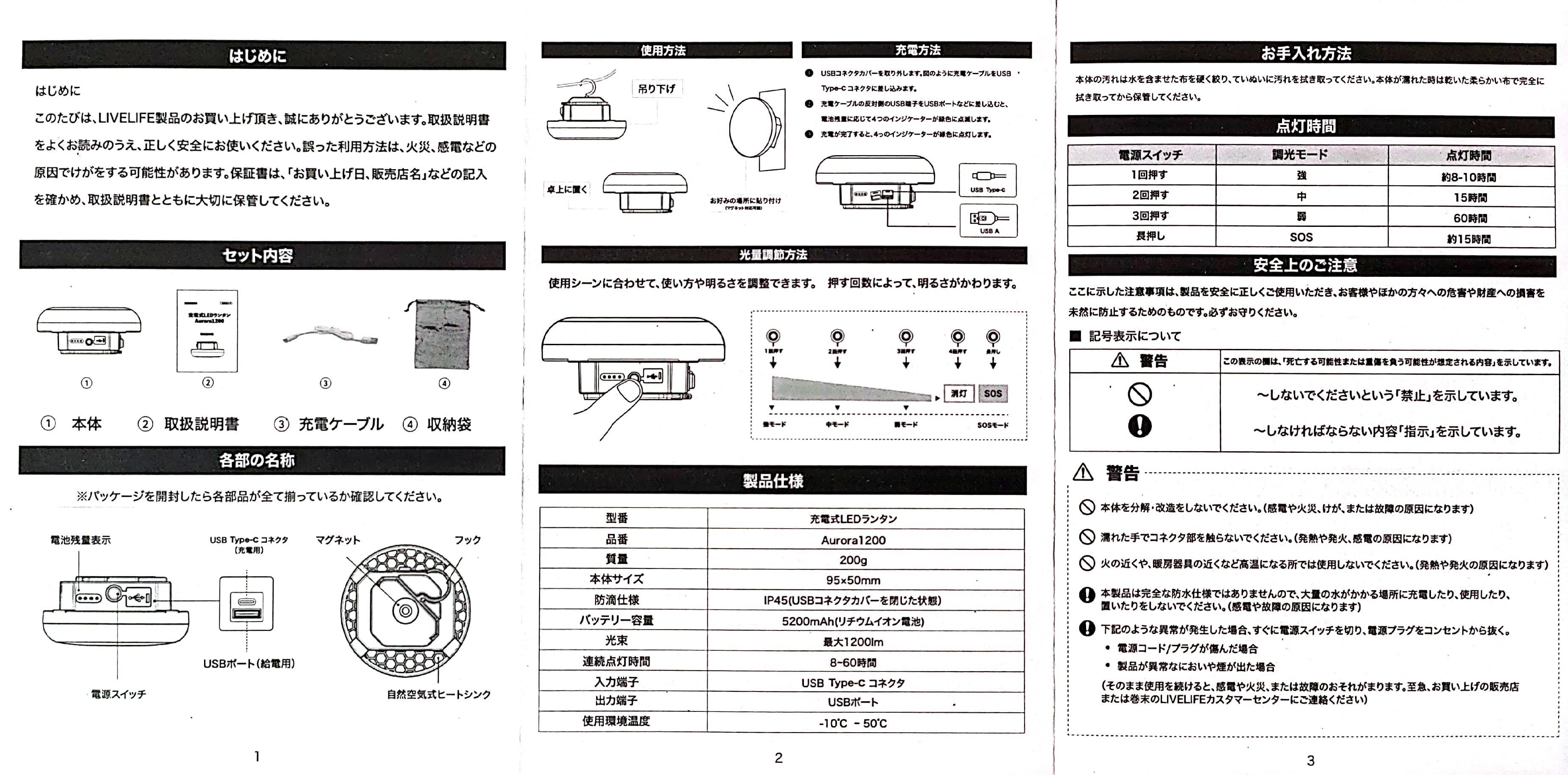 0551  照明器具/充電式LEDランタンAurora1200